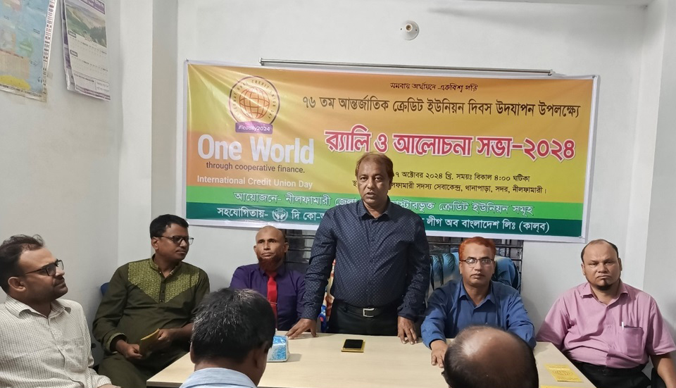 গত ১৭ অক্টোবর নীলফামারী জেলা কাল্ব ক্লাস্টারভূক্ত ক্রেডিট ইউনিয়নসমূহের আয়োজনে এবং দি কো-অপারেটিভ ক্রেডিট ইউনিয়ন লীগ অব বাংলাদেশ লিঃ (কাল্ব) এর সহযোগিতায় যথাযথ মর্যাদায় পালিত হলো ৭৬তম আন্তর্জাতিক ক্রেডিট ইউনিয়ন দিবস। যার প্রতিপাদ্য বিষয় ছিল- “সমবায় অর্থায়নে একবিশ্ব গড়ি” দিবসকে ঘিরে নীলফামারী শহরের প্রধান প্রধান সড়ক র্যালি প্রদক্ষিন শেষে নীলফামারী জেলা কাল্ব সদস্য সেবা কেন্দ্রে আলোচনা সভা অনুষ্ঠিত হয়।